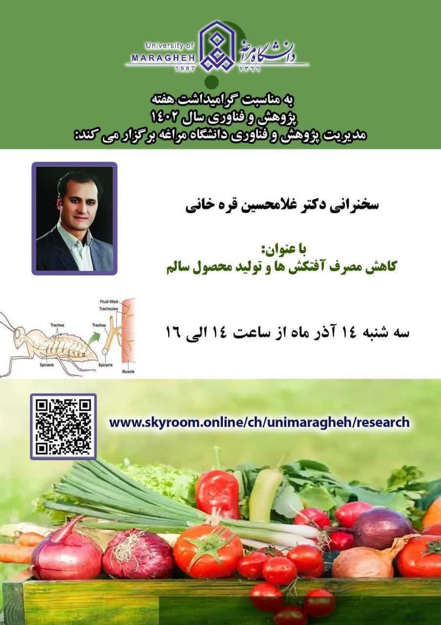 سخنرانی جناب آقای دکتر غلامحسین قره خانی با عنوان "کاهش مصرف آفتکش ها و تولید محصول سالم" - دانشکده مهندسی کشاورزی دانشگاه مراغه