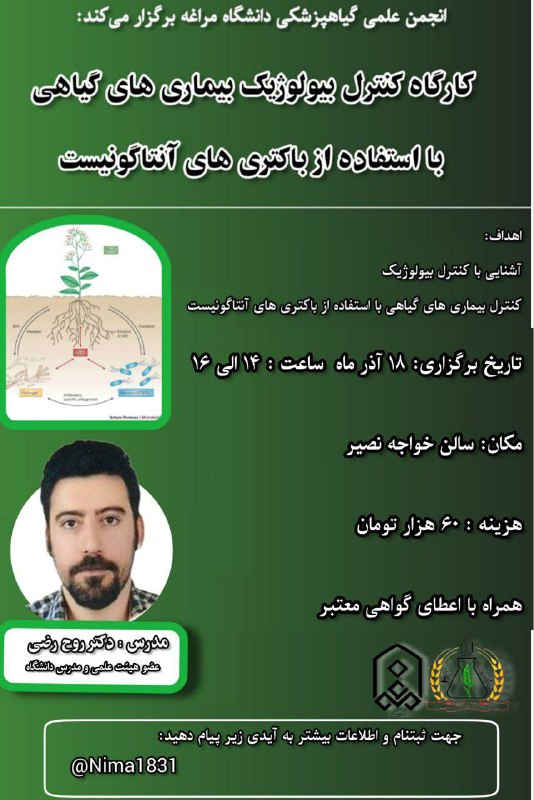 کارگاه کنترل بیولوژیک بیماری های گیاهی با استفاده از باکتری های آنتاگونیست