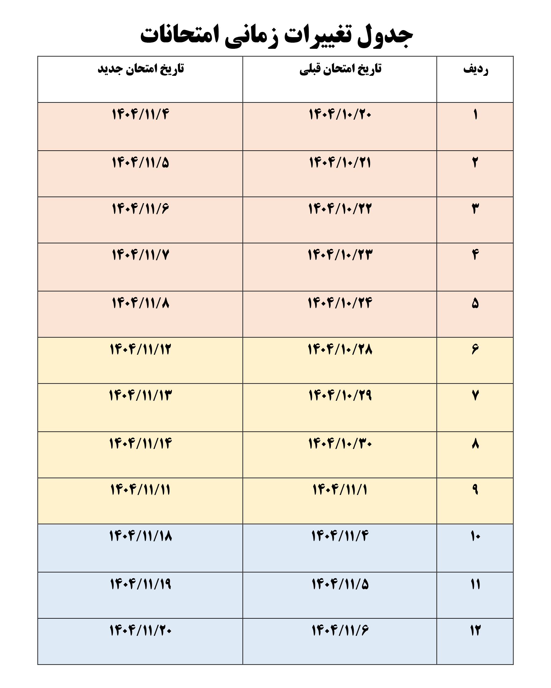 - آزمون دوره های تحصیلات تکمیلی(کارشناسی ارشد و دکتری) دانشگاه مراغه بصورت حضوری بر اساس برنامه تغییر یافته بشرح جدول پیوست انجام می گیرد.
